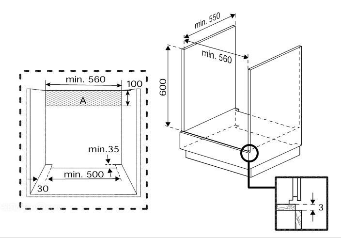 | Габариты встраивания под столешницу (ВхШхГ) | 600х560х550 мм |