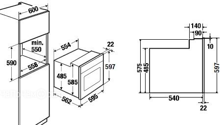 | Размеры ниши для встраивания Ш x В x Г | 560 x 590 x 550 мм |