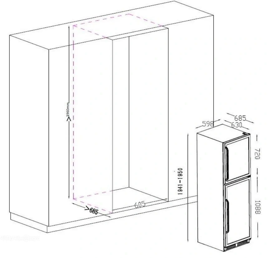 | Габариты ниши (ВхШхГ) | 1960х605х685 мм |