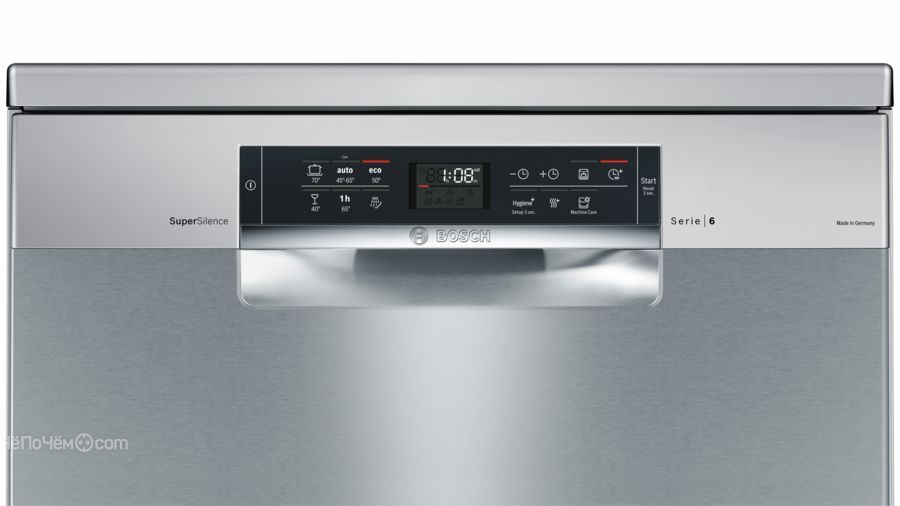 Эта отдельно стоящая посудомоечная машина может вымыть посуду на 14 персон одновременно. Высоту верхней полки можно изменить в зависимости от размера посуды. У этой модели имеется отдельное место для бокалов и стаканов. Дверца посудомоечной машины не закрывается автоматически, если она открыта на 45 градусов, и не открывается по окончании работы. Также у этой модели имеется индикатор температуры. Эта посудомоечная машина показывает время до окончания цикла. Модель удобна в использовании: возможность выбора одной из шести программ позволяет установить необходимые параметры для мойки. Эта модель неплохо отмывает посуду и столовые приборы, но плохо справляется с кастрюлями и сковородами как в основном, так и в ECO-режиме. Это посудомоечная машина со средним уровнем шума. В основной программе цикл мойки займет 135 минут, а в ECO-программе – 201 минуту. При мытье посуды в ECO-режиме эта модель затрачивает на 24,5 % меньше воды и на 17,9 % меньше электроэнергии, чем в основном режиме. Сковороды и кастрюли, а также пластиковые контейнеры остаются мокрыми после мытья в основном режиме. А вот в ECO-режиме пластиковые контейнеры высохнут лучше, хотя сковороды и кастрюли высохнут плохо, так же как и в основном режиме.