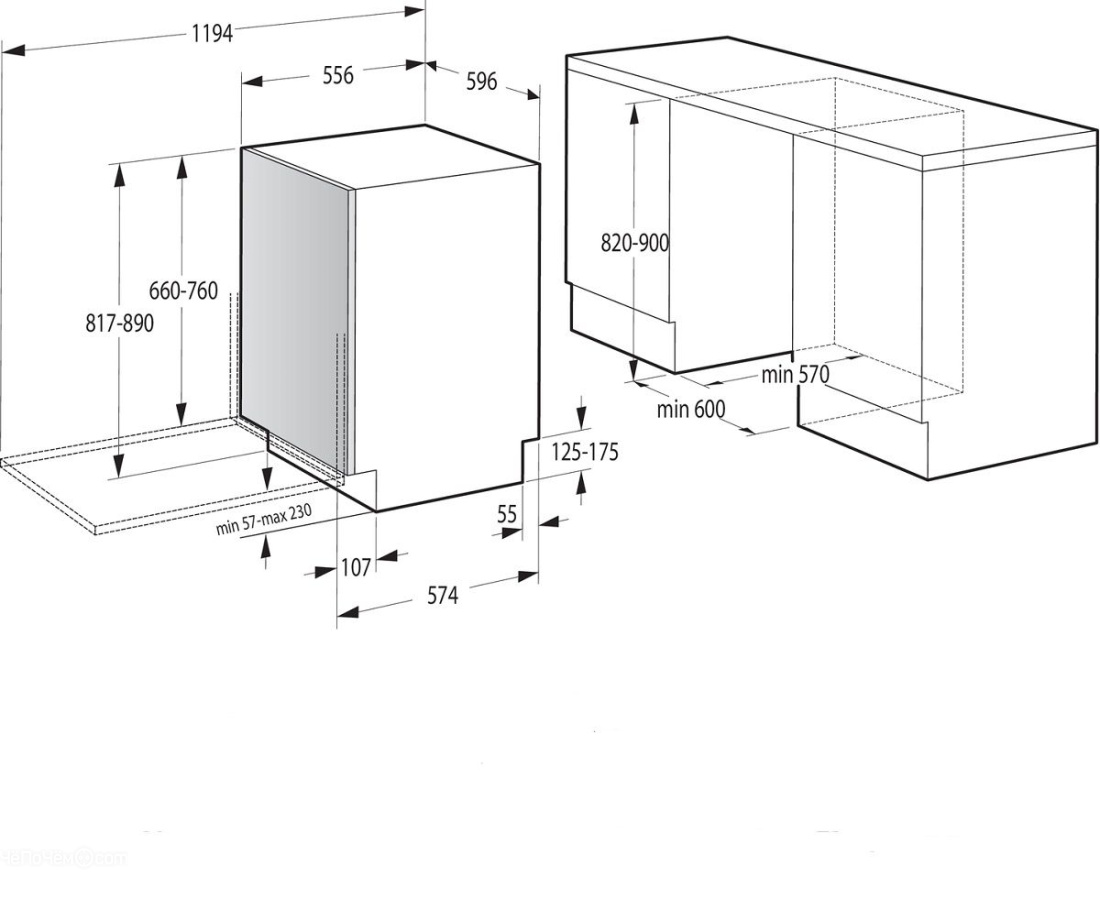 | Габариты ниши для встраивания (ВхШхГ) | 82-90х60х57 см |