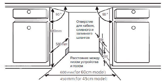 | Размеры для встраивания (ШхГхВ) | 45х58х82 см |