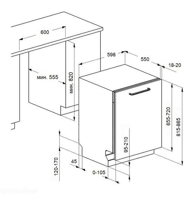 | Габариты ниши (ВхШхГ) | 820х600х555 мм |