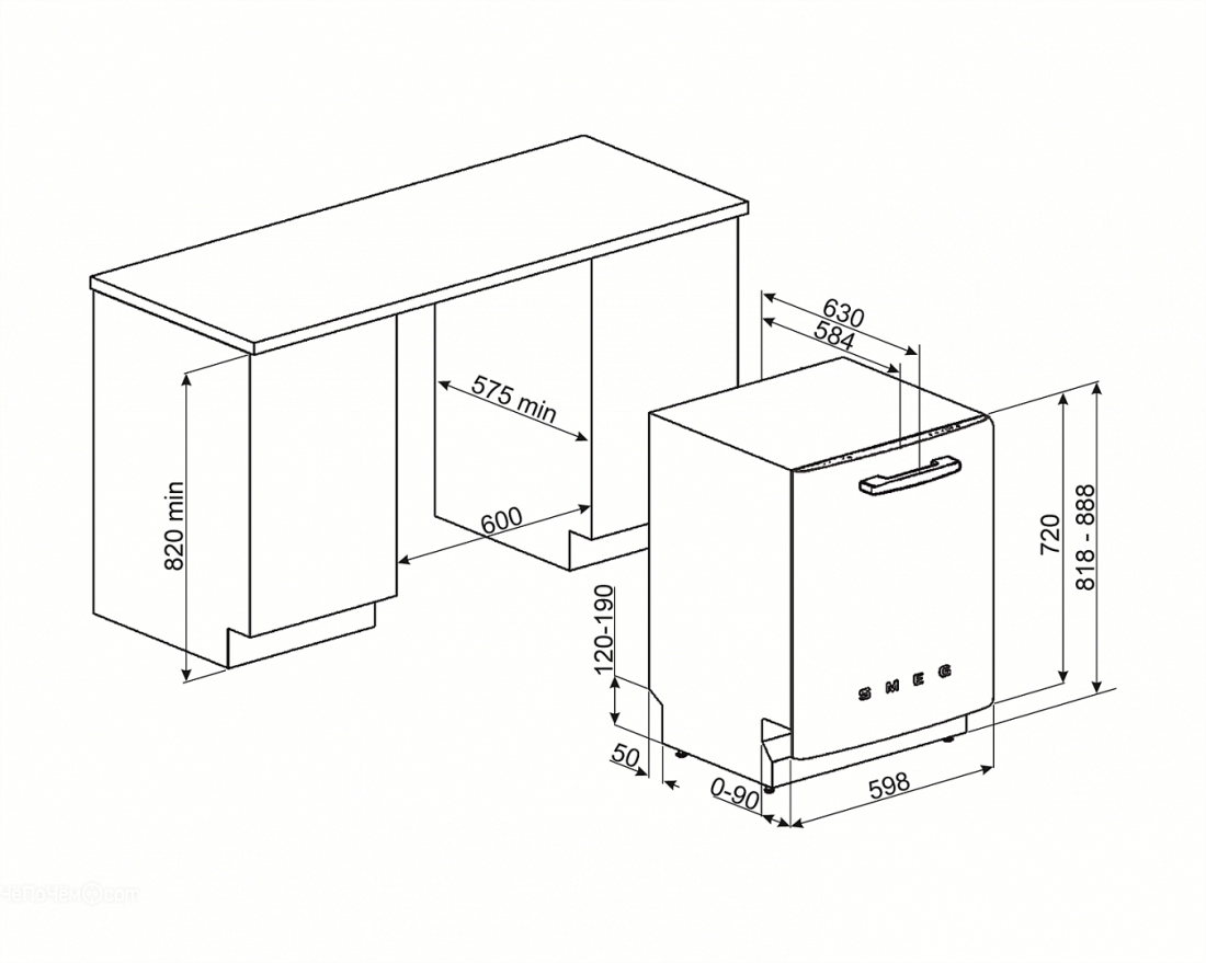 | Габариты ниши для встраивания (ВхШхГ) | 820х600х575 мм |