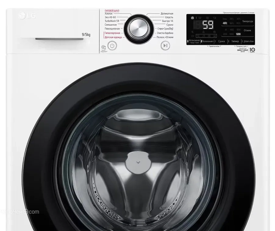 | Программы | детская одежда, гипоаллергенная (стирка), автоматическая стирка, хлопок, деликатная, только сушка, повседневная, эко 40-60, смешанная, быстро 14, пoлocкание+отжим, очистка барабана, TurboWash 59, стирка+сушка, шерсть |