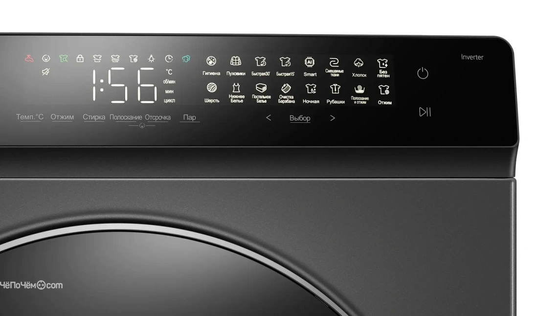 | Программы | гигиена, пуховики, быстрая 30’, быстрая 15’, Smart, смешанные ткани, хлопок, без пятен, шерсть, нижнее бельё, постельное бельё, очистка барабана, ночная, рубашки, полоскание и отжим, отжим |