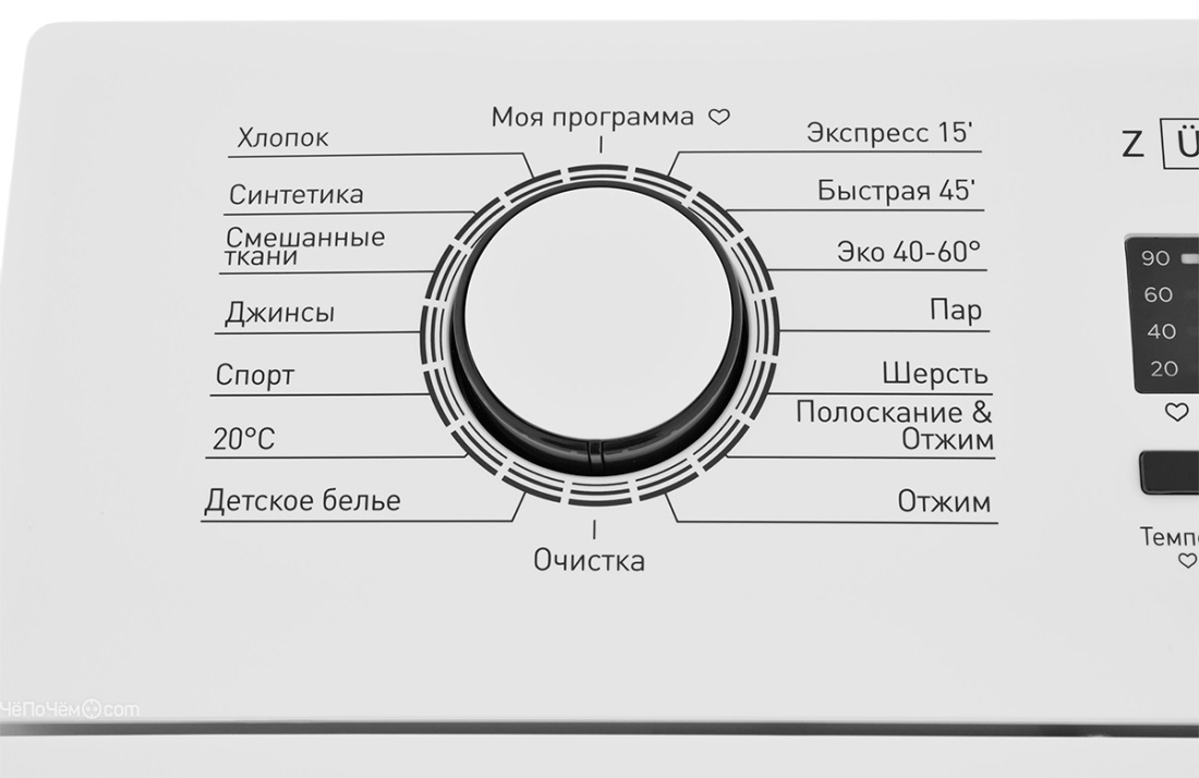 | Программы | хлопок, синтетика, смешанные ткани, джинсы, спорт, 20°С, Детское белье, Экспресс 15', Быстрая 45, эко 40-60°, пар, шерсть, полоскание & отжим, отжим, моя программа, очистка |