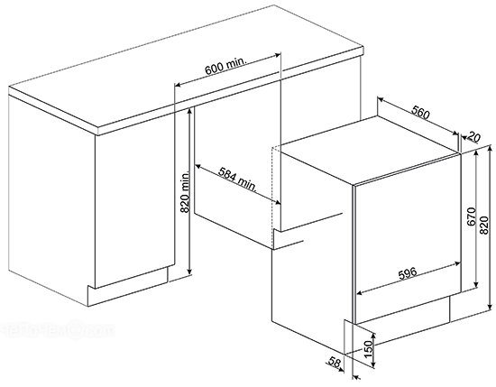 | Размеры для встраивания (ВхШхГ) | 82х60х58.4 |